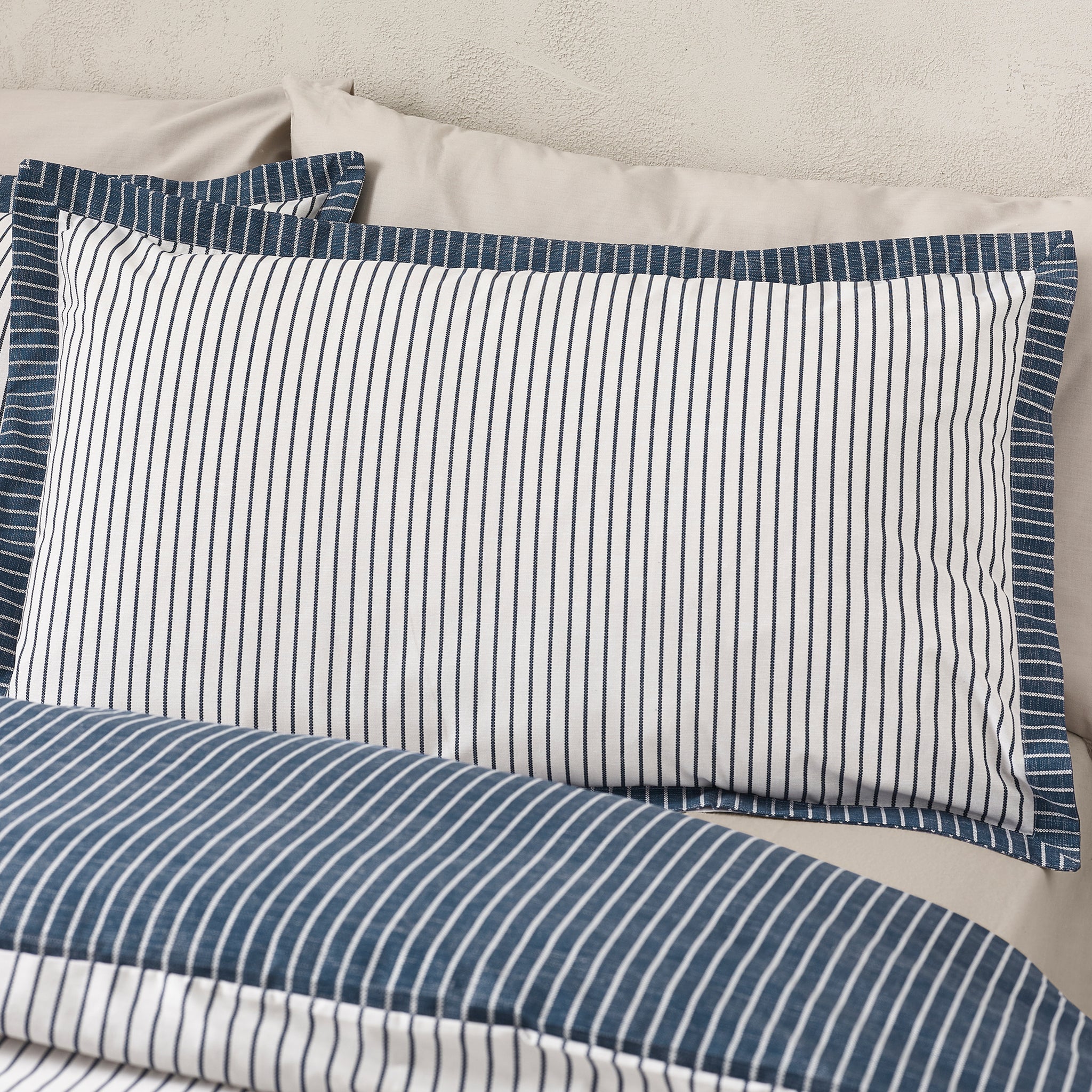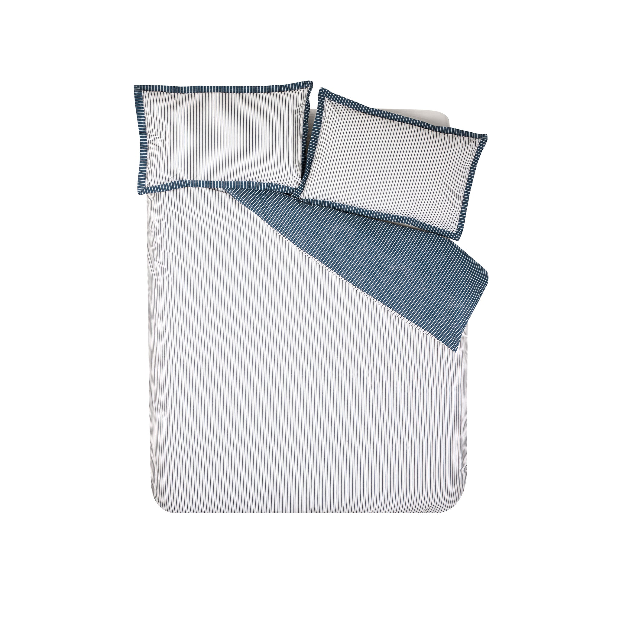 This classic design features a sophisticated pinstripe pattern, with a darker reverse option for versatile styling. The oxford border pillowcases add a refined touch, making this bedding set perfect for those who appreciate a sleek and tailored look. Created from easy-care recycled polyester and soft cotton, blended for everyday use.