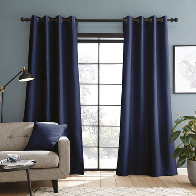 Textured Blackout Navy Eyelet Curtains