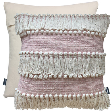 Heart Pom Pom Light Blush Filled Cushion