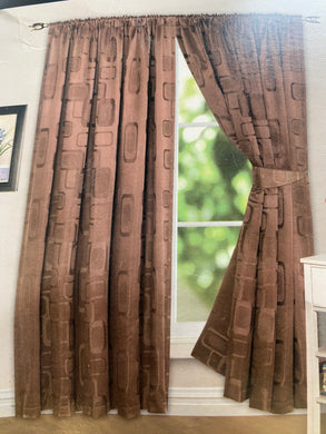 Geo Chocolate Brown Tape Top Curtains inc. Tie Backs